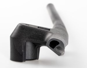 The fluidmelt process enables the production of hollow structures by injecting water or nitrogen. During the process, the molten core of the component is displaced into an overflow cavity or back into the plasticising unit, creating a hollow space within the part. At JEC World, the process will be demonstrated using gas injection and overflow cavities. Once the cooling phase is complete, the hollow handlebar can be removed from the mould. Thanks to its geometry, this method allows for the production of extremely lightweight structures that also offer high bending and torsional stiffness.