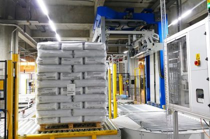 The Bischof + Klein (B+K) stretch hood film is used today in the Luran® S (1) facility, a production line producing about 35,000 tonnes of packaged goods per year.